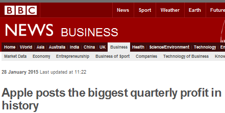 2015/1:アップル史上最高益達成のBBC記事