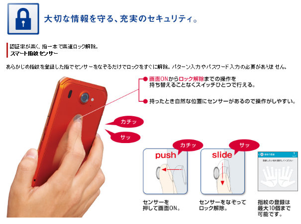サムスンのGALAXYは比較的最近なのですが、富士通のARROWSはかなり以前から指紋認証機能を搭載していました。