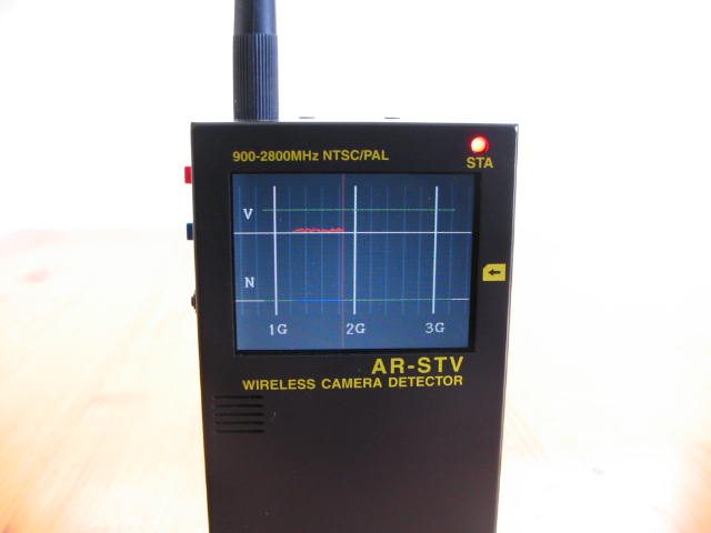 使用方法は非常に簡単で、本器の電源スイッチをONすると、自動的にスキャンを開始し、盗撮電波があると自動的にスキャンを停止して、盗撮画像を表示してくれます。