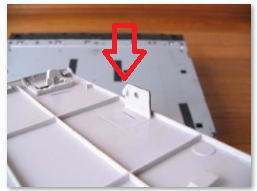 左下の写真をご覧頂く様に、外し終えた天板のビス止め箇所裏に小さな突起が見えます。