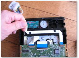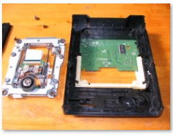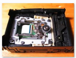 この状態ではトレーがロックされていてトレーを引き出せず、かと言ってロックを外す機構がトレーに邪魔されていて触れる事もできず、また全周を見渡しても基板以外一切取り外せる部品が無いのです。