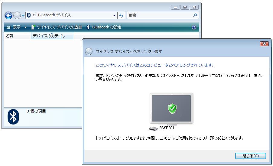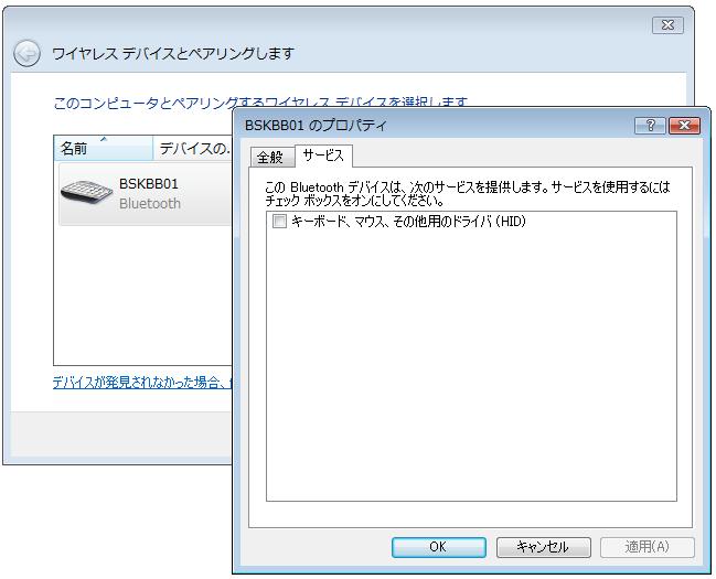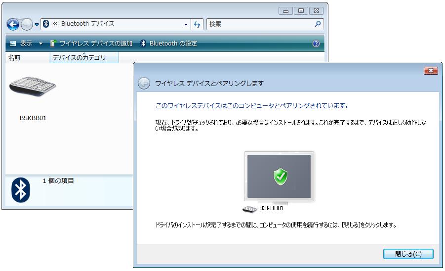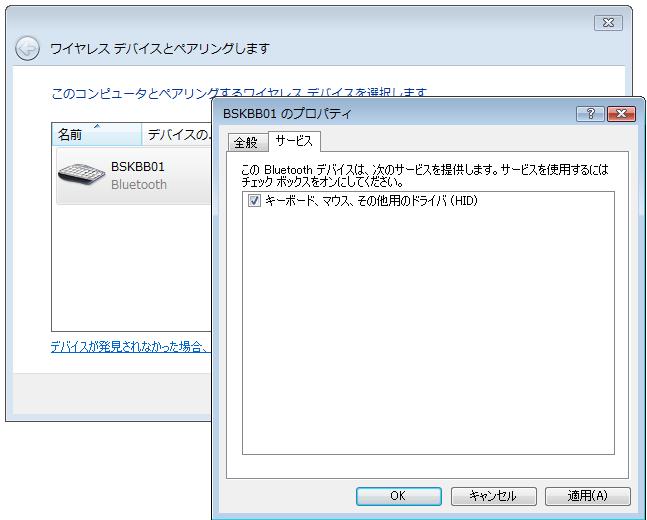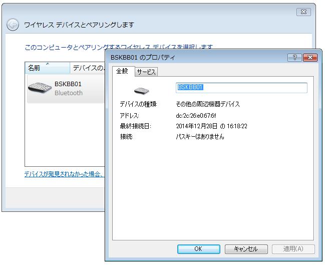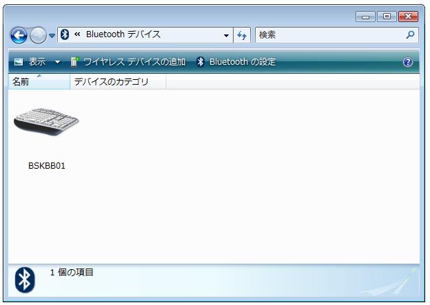 ④Bluetoothデバイス(スタート→コントロールパネル→ハードウェアとサウンド→Bluetoothデバイス)の中に、以下の様にキーボードが追加されるのを確認します。(図18参照)