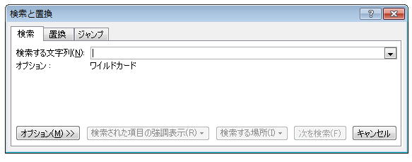 これも簡単で、検索と置換のオプション画面で、ワイルドカードを使用するの設定を解除すれば良いだけです。