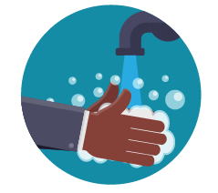 万一触れてしまった場合は、手洗いを行うまで一切自分の顔には手を触れない。