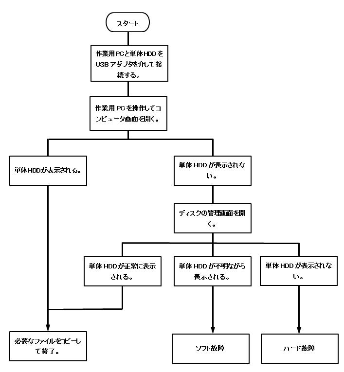 既にお伝えしている様に、もしソフト故障なら次章の4. HDDのソフト故障へ、ハード故障ならば5. HDDのモーター回転不良にお進み下さい。
