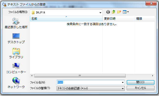 4)テキストファイルからの登録画面が開きます。