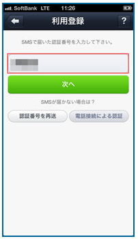 ここで興味深いのは、友達を含めて名前は一切取得されないという事です。 後でもまた述べますが、これで吸い上げられたデータは、個人情報保護法の対象外になる可能性もあるのです。 また”取得する場合があります”となっていますが、後ほど出てくる”友だち自動追加”をオンにすると、これらの情報がLINEのサーバーに吸い上げられる事になります。 それを聞いただけで通常は使用をためらうと思いますが、そのリスクを熟知した上で、ここでは同意をタップします。 大事なことは、みんなが使っているから大丈夫だろうなどと思って、決して同意してはいけないという事です。 そんな場合は、リスクが現実になる恐れがあります。 懸命な貴方は、そのリスクを十分認識した上でLINEを使いこなせば良いのです。 5) 利用登録同意をタップすると、認証番号を記載したSMSが端末に送られてくるので、その認証番号を入力して次へをタップします。(iPhoneの場合自動で認証される場合もあり) ![]() なお最近の格安SIMの場合、音声通話付きでもSMS非対応、もしくはSMSは別料金としているものがあります。 この場合、電話番号によるLINEのアカウント作成ができないため、フェイスブック経由の登録になりますが、本書では取り上げていないため、他のサイトをご参照願います。 ただしその場合でも、設定内容については参考になると思いますので、できれば本書を最後までお読み頂ければと思います。