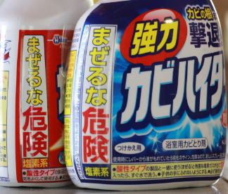 それはともかく、本書は本法令の対象外ですので、アルカリ性漂白剤とか酸性漂白剤と呼んでも良いのですが、製品のラベル表示とリンクしないので、渋々塩素系洗浄剤、或いは酸性タイプ洗浄剤と呼ばせて頂いています。