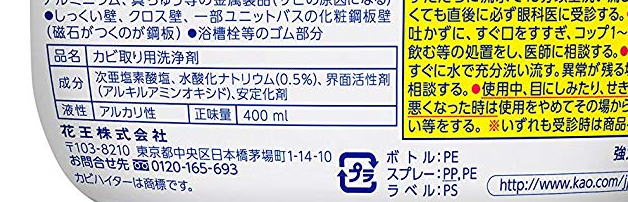 それでは先ず、先ほどのカビキラーとカビハイターの成分を見てみたいと思います。