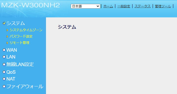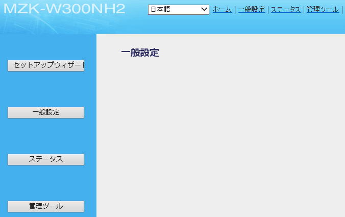 ⑥すると以下の様なWi-Fiルーターの管理画面が表示されます(ここまで来れば貰った様なものです)ので、一般設定をクリックします。
