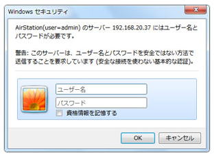 ⑤Wi-Fiルーターにアクセスすると以下の様なウィンドが表示されますで、Wi-Fiルーター本体のラベルに記載されているユーザー名とパスワードを入力します。