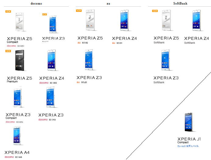 これを見ると、売れ筋のZ5は大手キャリア3社で販売されているものの、Z5 CompactとZ5 Premium