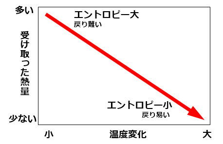 このためには、エントロピーをもっと端的に分かり易く言えないかと思っていたのですが、この度ようやく思い付きました。