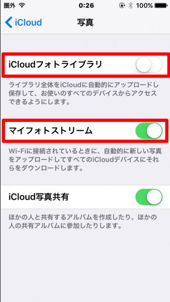 説明を要約すると、iCloudフォトライブラリをOFFにしていても、iPhoneで撮った写真はWi-Fiを経由してマイフォトストリームに保存されるという事です。