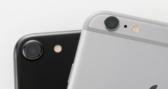 今まで全身の記念写真に対して、その場でカメラを切り替える事で、上半身の記念写真が撮れる事になります。 ただしこれも、前述の通り所詮6年前の時代遅れのカメラを使っていますので、画期的というほどのものではありません。 何故ならば先ほどお伝えした様に、他社のスマホの画素数は、多いものでは既に2400万画素もあります。 ですので、2400万画素の中央の1,200万画素を抜き出せば、iPhone 7の望遠レンズで撮ったのと同じ画像が撮れるのです。 これをデジタルズームと呼びますが、この方式の方が薄型のスマホには合理的な選択と言えるのは誰が考えても明らかです。 実際iPhone 7 Plusにおいても、後述するある理由により、夜間の撮影においては、望遠カメラを使わずに広角カメラのデジタルズームを使っているのです。 その場合、1,200万画素の半分である600万画素になるので、粒子が荒くなりますが、もし2,400万画素あれば半分でも1,200万画素ありますので、iPhone 7並みの解像度を得られる事になります。 それでは前述しました、夜間の撮影において、望遠カメラではなく広角カメラのデジタルズームを使う理由をお伝えしましょう。 まず一つ目の理由は、ご存じの様に広角カメラには光学手振れ補正が付いているのに対して、望遠カメラについてはスペースの関係で手振れ補正は付いていないからです。 そして二つ目の理由は、広角レンズの明るさがF1.8なに対して、望遠レンズの明るさはF2.8と1.3段も暗いからです。 手振れが発生し易いのは当然望遠レンズであり、そのレンズはF2.8と広角レンズより暗い上に、手振れ補正は明るくてブレ難い広角レンズにしか付いていない。 本来ならば、手振れ補正は、手振れの発生し易くて、尚且つ暗い望遠レンズに付けるべきなのに、広角レンズにしか付いていないのです。 思わず笑ってしまう程、矛盾したスペックです。 おまけに、それらのネガティブ情報をきちんとアナウンスしないで販売を進めるAppleの態度にも、甚だ疑問を覚えます。 ついでに言っておきますと、iPhone 6も同じですが、iPhone 7のレンズも外装から飛び出しています。 ![]() iPhone 7 Plusの飛び出したレンズ 今時こんなにレンズが飛び出しているのは、iPhoneくらいのものでしょう。 Appleのデザイン重視の思想は、醜いラインを含めて、もう完全に過去のものなのかもしれません。 最後にもう一つ。 iPhone 7のレンズ位置が、以前よりコーナー側に寄ったのに気が付いた方はいらっしゃるでしょうか? ![]() iPhone 7(左)のレンズは、iPhone 6(右)より更にコーナーに寄っている 気にする差ではないと言えばそれまでですが、本来レンズの位置は極力本体の中央部に近い方が理想なのです。 その方がモニターで見た画像と被写体とのズレが少なくなりますし、指でレンズを遮る可能性も少なくなります。 おまけにレンズがコーナーに近くなると、レンズ面をぶつける可能性も高くなります。 本来次機種の性能は、先代より劣ってはいけないというメーカーとしての不文律があるのですが、Appleはこういう不文律も簡単に無視する企業の様です。 本項のまとめです。 デュアルカメラが搭載によって望遠用カメラが追加されたが、これが働くのは明るくてピントの合う遠距離撮影の場合だけである。 おまけにレンズがコーナー部に寄ったため、レンズ面をぶつける可能性が高くなった。 防水対応iPhoneを水没させてしまった話は良く聞きます。 これがようやく僅かながら解決しそうです。 僅かながらというのは、iPhone 7にやっと盛り込まれた防水機能は、IEC(国際電気標準会議)規格のIP67のレベルです。 ちなみにIP67の”6”が防塵レベルで、”7”が防水レベルを示しています。 これがどの程度の防塵防水レベルかと言えば、”粉塵が中に入らず、一時的(30分)に一定水深(1メートル)の条件に水没しても内部に浸水しない”です。 確かに今までは全く無防備だったのですから、それと比べれば画期的な事と言えるでしょう。 ですが他社機においては、この程度の防水機能は既に2012年には搭載されており、現在では以下の表の様にIPX5/8の両方に対応しているのが普通なのです。