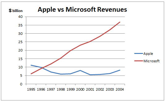 ですので、今まで背景ぼかしはデジタル一眼レフカメラにしかできなかったという記述は明らかに間違いですし、似た様な機能は何もiPhone 7が初めて搭載した訳でもありません。 もっと言えば、誇大広告ぎりぎりの宣伝文句です。 それはともかくとして、この擬似的なボケは、背景の画素を周囲の画素と平均化するのが一般的なので、背景の画像のエッジが無くなって確かにボケた様に見えるものの、本来のボケの様に点光源が綺麗な円になるものではありませんでした。 ![]() 点光源がボケると円形になる このため、SONYの背景ぼかしモードのサンプル画像において、本来でしたらボケた暗い枝は周囲の明かりに押されて細くなる筈(下の写真参照)なのですが、ボケ処理前も後も同じ太さになっています。 ![]() 暗いテーブルがボケると細くなる これに対して、Appleの被写界深度エフェクトのサンプル画像(下の写真参照)を見ると、背景の明るい部分が円形にボケているのが分かります。 ![]() Appleの公式HPにある被写界深度エフェクトのサンプル画像 ですので、従来の単純な擬似ボケに対して、もうひと工夫している様です。 ただし所詮デジタルの画像処理ですので、親派サイトの云うデジカメを凌駕したというのは、さすがに有り得ない事でしょう。 実際上の画像サンプルをじっくり見ると、背景との分離が難しい細い髪の毛は、滲(にじ)んでシャープさが失われていますし、頭の上部には、本来背景にあるべきボケが回り込んで写っています。 また本機能についても、後追いで追加される予定ですので、くれぐれもその客観評価を見る前に期待だけで予約しない方が無難です。 Apple親派の肯定評価に対して、Nikon親派やCanon親派による本機能の本格的な評価が行われるのが待たれます。 本項のまとめです。 被写界深度エフェクトは、従来のデジタル画像処理によるボケ表現より多少改善しているかもしれないが、所詮擬似ボケであり、純粋なレンズによるボケを超す事は有り得ない。 イヤホンジャック廃止これは一体何のためだったのでしょう。 ![]() 消えたイヤホンジャック このモデルチェンジでイヤホンジャックを廃止した理由が分かりません。 恐らくiPhone 8になれば筐体も変更して多少薄くなったのでしたら分かるのですが、厚みも一切変わらないのに、なぜこの時期にイヤホンジャックを廃止したのでしょうか? 同梱のヘッドホンジャックアダプターを使えばLightning端子経由で従来のイヤホンを使えるとしても、流れているのはアナログ信号ですので、間のコネクターが多くなれば当然信号(音)は劣化します。 ![]() 当初はコストダウンのためかと思ったのですが、同梱のアダプターで相殺されてしまいます。 残るは、同時に発売されるワイヤレスイヤホンのAirPods(16800円)を拡販するためか、さもなければ防水対応のイヤホンジャックはパテントの関係で使えなかったかですが、これらも今一つ説得力がありません。 となると考えられるのは、一つしかありません。 ご存じの様にiPhone 7はApple独自のLightningコネクターを使っています。 となると、今後サードパーティーからLightningコネクター対応のイヤホンホンやヘッドホンジャックアダプターが多数発売されるでしょう。 ところが、このLightningコネクターをサードパーティーが使うに当たっては、AppleからMFi(Made For iPhone/iPad/iPod)認定を取得すると共に、Appleに対してライセンス料を支払う必要があるのです。 するとそれによってライセンス料が発生して、それでまたAppleは大儲けできるのです。 すなわち、iPhoneユーザーには多大な迷惑を掛けながらも、Appleは更に儲かるという(独占禁止法には触れない)恐るべき仕組みができているのです。 なぜこの様な事を誰も言わないのでしょう? ついでですので、このLightningコネクターについても述べておきましょう。 先ほどお伝えした様にLightningコネクターはApple独自の規格なのですが、これと同様に小型でどちらの向きでも差し込めて更に多機能なのが最新のUSB Type-Cです。 ![]() Apple専用規格のLightningコネクターとオープン規格のUSB Type-C 最近発売のアンドロイド系のスマートフォンに使われ始めており、これでしたらオープン規格なのでライセンス料は発生しませんし、普及すればケーブルや各種アダプターを共通化できます。 Appleも昨年(2015/3)発売したMacBookに使用したのですが、恐らくiPhone等に使用する事は決して無いでしょう。 何故ならばLightningコネクターを使い続けた方が、断然儲かるからです。 Appleとはそんな会社なのです。 こんな阿漕な事ばかりやって、つい20年程前のどん底時代にまた戻らなければ良いのですが。 ![]() 20年前のAppleとMSの売り上げの推移 本項のまとめです。 iPhone 7からイヤホンジャックを廃止したのは、顧客の利便性を無視して、Appleが更に儲けるためだと推測される。 同様の理由により、LightningコネクターをUSB Type-Cに変更する可能性はない。 その他さて、ここまでお読み頂いていかがでしょうか? 今までイ