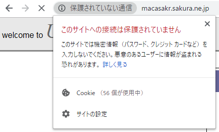 幣サイトの場合、こちらからの情報送信だけなので、誰に傍受さても全く問題ないと先延ばしにしていたのですが、最近Google Chromeを使うと以下の様な気になるメッセージが表示される様になり、ついに重い腰を上げた次第です。