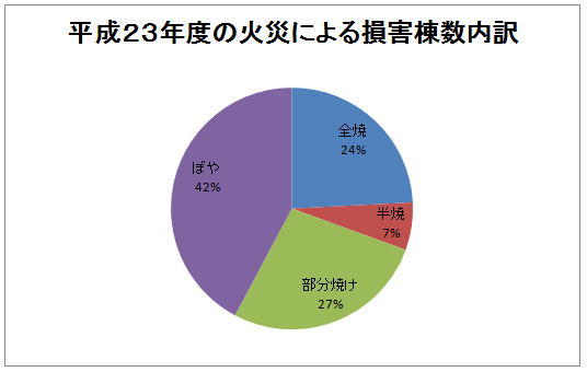 ただし以下のグラフにもあります様に、全体の70%は自腹で何とか対処できそうな”ぼや”と”部分焼け”ですので、どうしても保険金が必要な半焼/全焼は全体の30%という事になります。