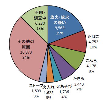 上記グラフに、放火、その他の原因、或いは不明が66%ありますが、これらについて原因や犯人が特定できれば、当然ながらその責任元に対して損害賠償請求が可能なのを忘れてはいけません。