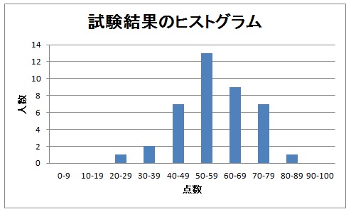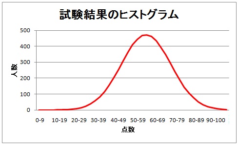 ちなみに、点数毎の発生頻度のグラフをヒストグラム(ヒストグラフではありません)と呼びます