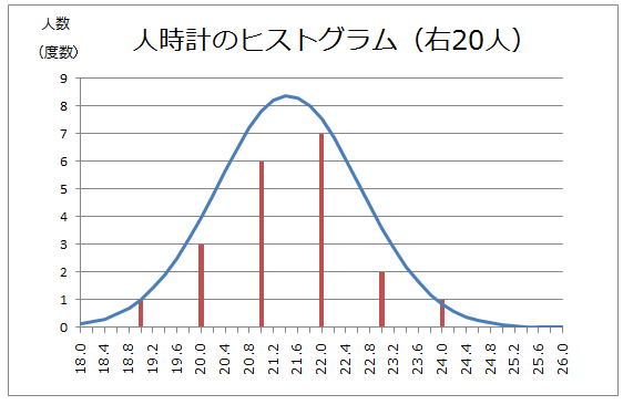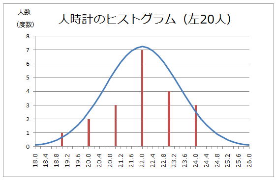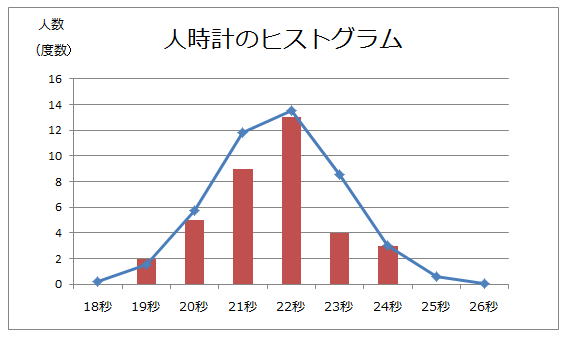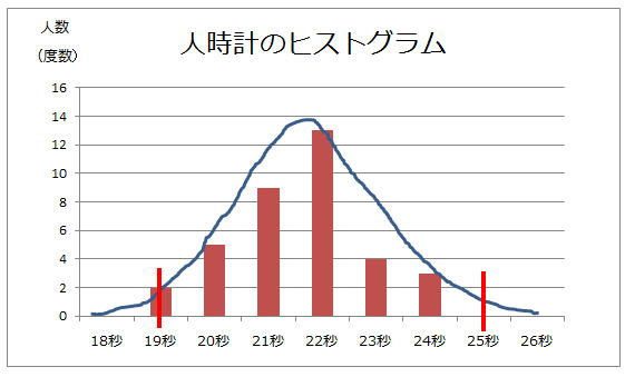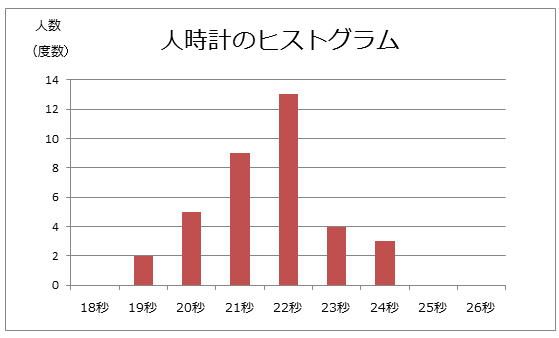 これをご覧頂きます様に、この人時計の中心値は22秒から少しずれて、21.7秒になります。