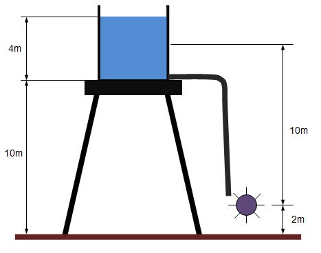 例えば、下の図の様に地上から10mの所に10トン(10,000㎏)の水が入ったタンクがあったとします。