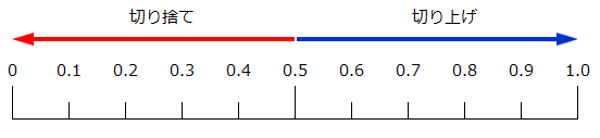 例えば小数点以下1位の数値を整数にしたい場合、ある数値が0か1のどちらか近い方の整数にします。